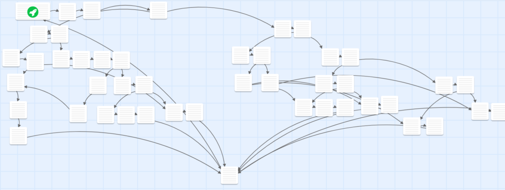 Below is the narrative structure of the Next Few Minutes. With each choice, the player enters a branch that changes the story they get to see. Although some forks eventually re-intersect, the design of story events as modular building blocks give this experience a lot of replayability. This approach also plays with ideas of fate and determinism in the form of world events.